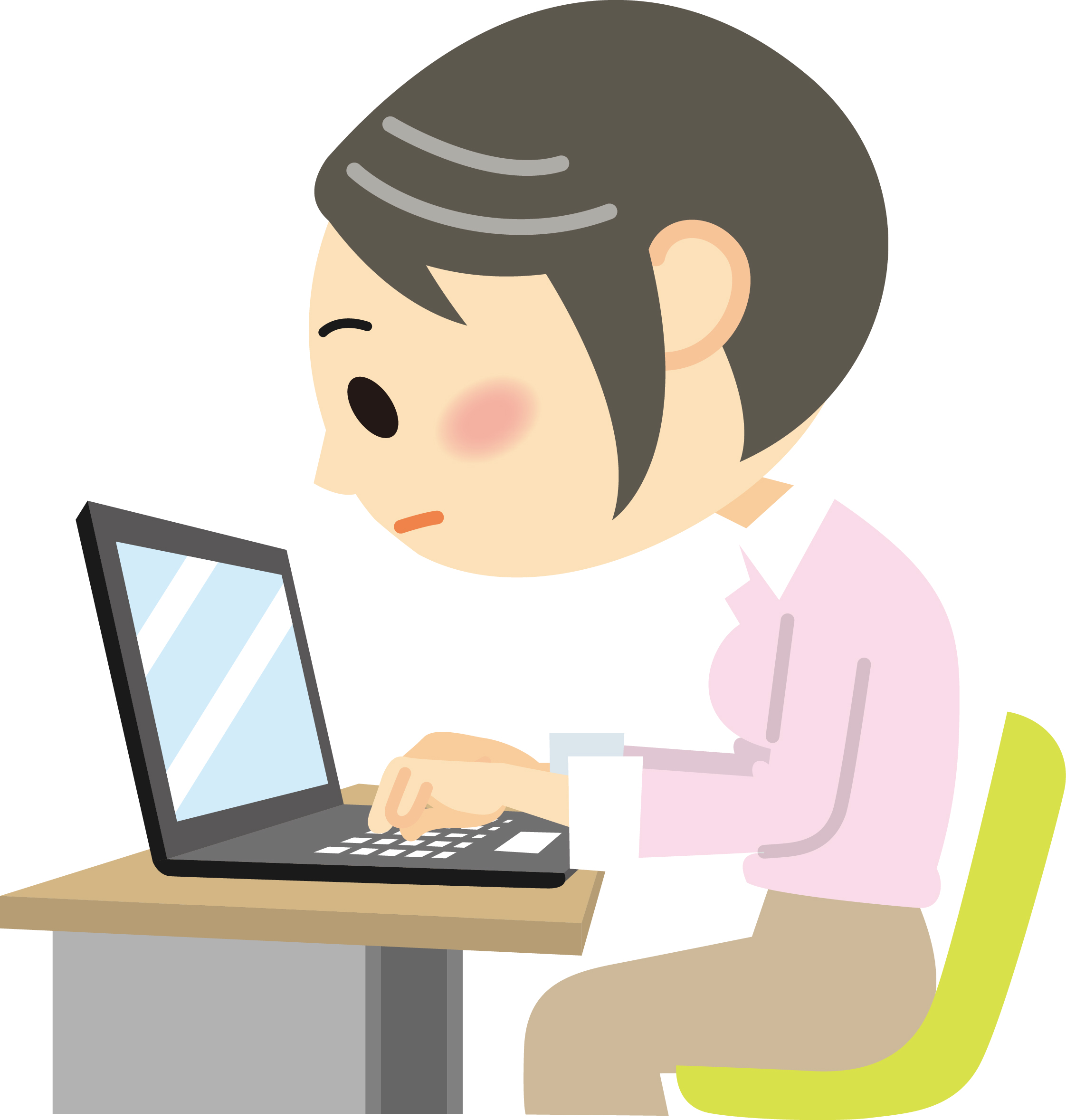 パソコンやスマホを長時間使っているうちに、猫背であごが出る姿勢が身についてしまっている場合