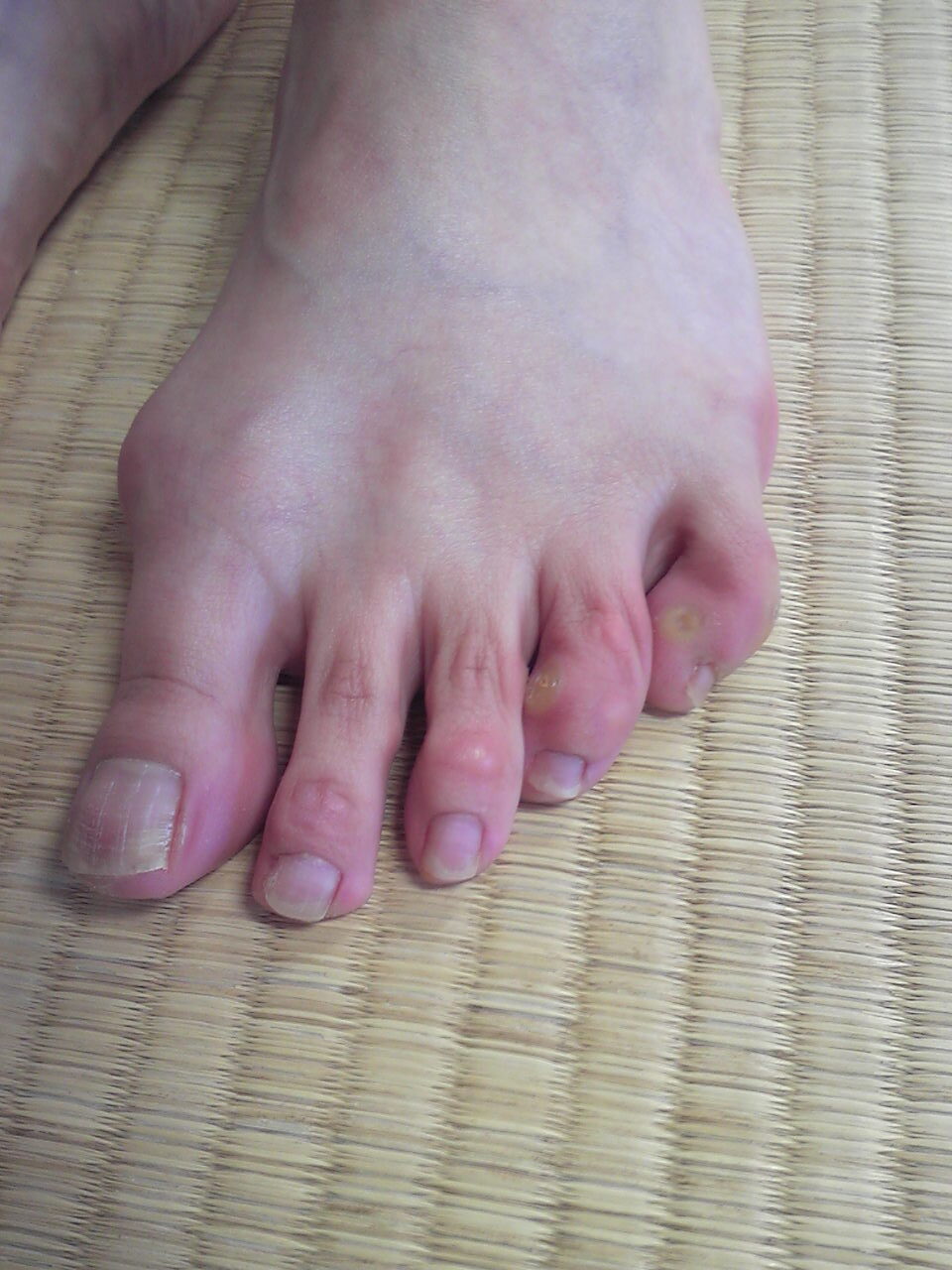 指が伸び、外反母趾ぎみにもなっています